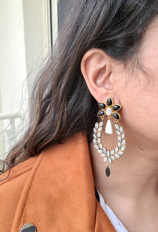 Black Onyx Flower Earrings
