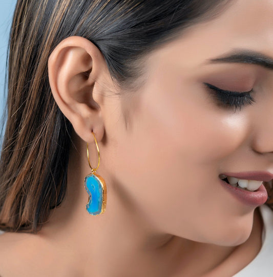 Blue Druzy Hoop Earrings
