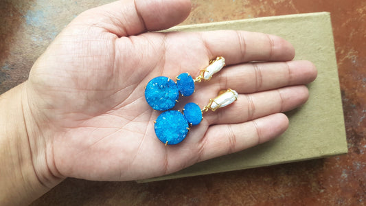 Blue Agate Druzy Earrings