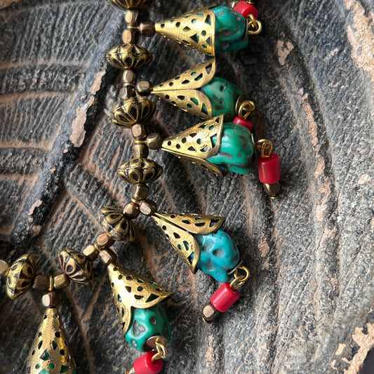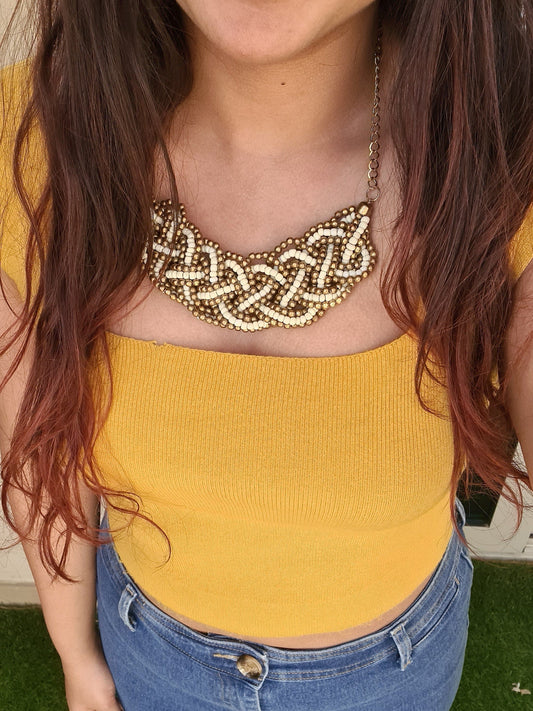 Oxidized Gold/Yellow Statement Beaded Necklace