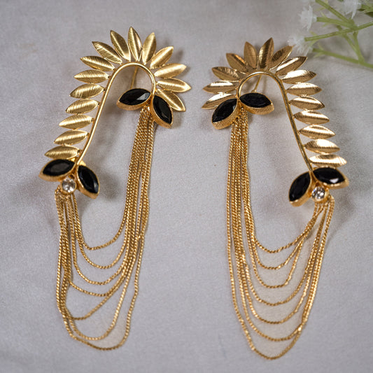 Boho Oversized Gold Black Tassel Ear Cuff Earrings