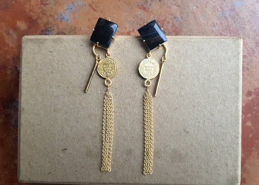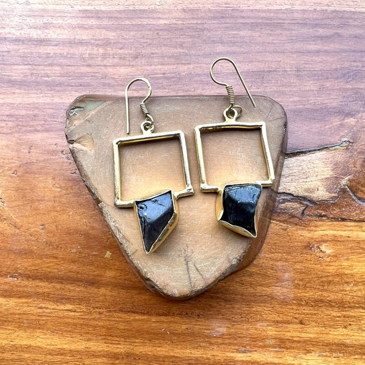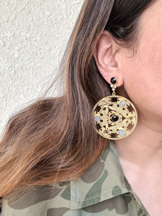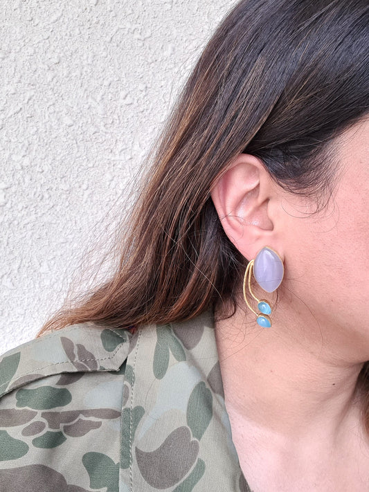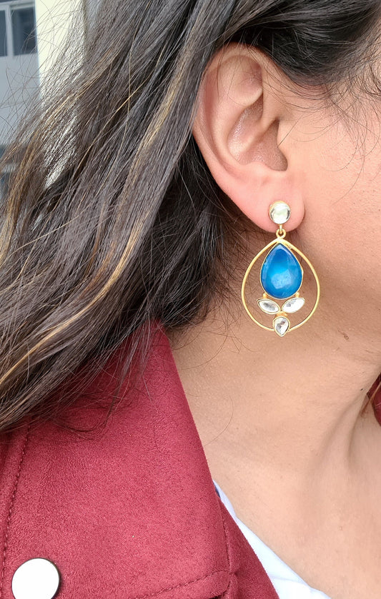 Oversized Purple Gemstone Gold Hoop Statement Earrings