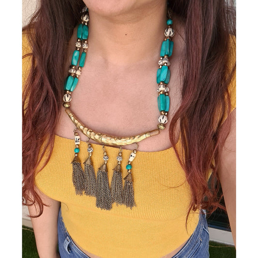 Green Chunky Multi-Strand Beaded Necklace – Boho Indian Statement Jewelry