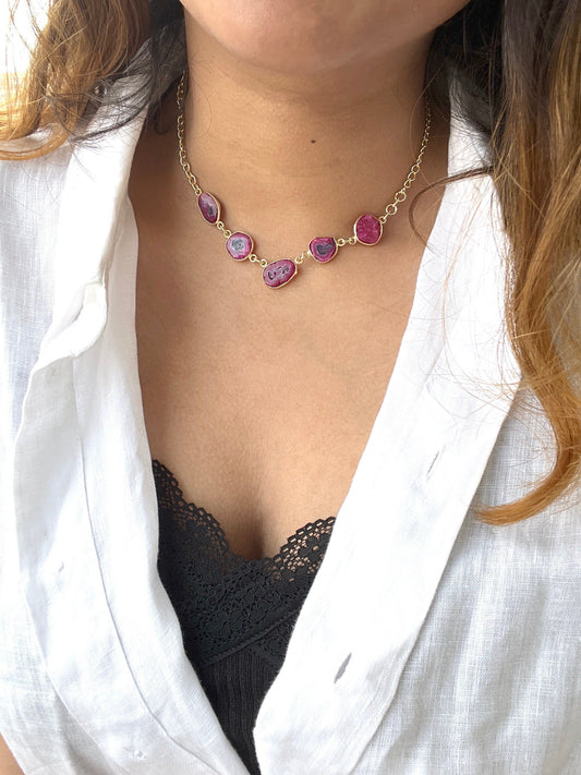 Pink Chunky Multi-Strand Beaded Necklace – Boho Indian Statement Jewelry