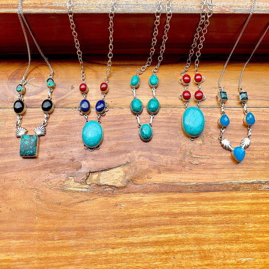 Coral & Turquoise Bib Statement Necklace – Boho Beaded Jewelry