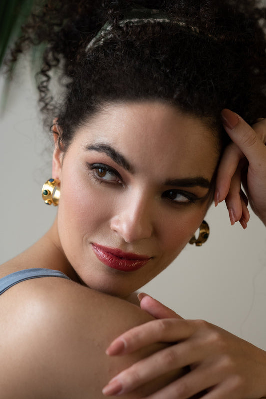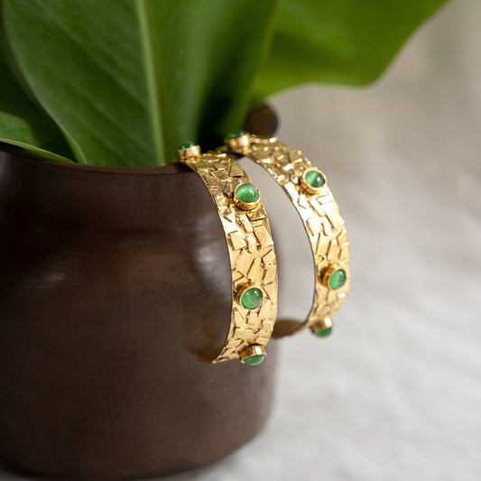 Green Stone Gold Hoops