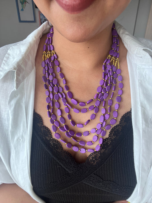 Oval Beads Purple Beaded Statement Necklace